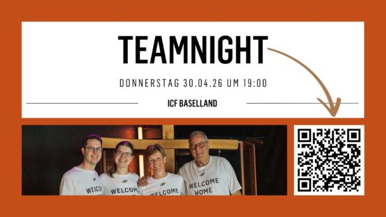Am 05.11.2026 um 19:00 Uhr machen wir eine Teamnight fürs ICF Baselland mit hoffentlich allen Volunteers. Die Vision dieses Abends ist es, dass wir als Kirche aufzeigen können, was unser Anliegen ist, was gerade so läuft und einfach die Menschen nah an dem zu haben was uns als Leitung bewegt.